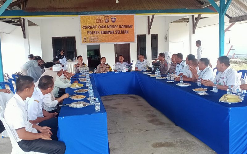 Konsel, Sultratimes.com, – Kepolisian Resor (Polres) Konawe Selatan (Konsel) Kembali melaksanakan kegiatan Jumat Curhat, dan kegiatan ngopi bareng bersama warga yang digelar di tempat pendopo rujab camat Palangga, Jumat (08/09/2023).