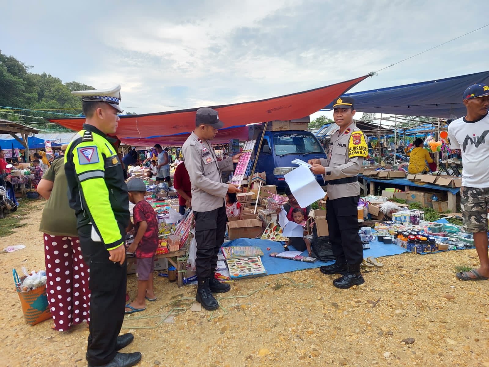 Kegiatan patroli di pimpin langsung Kapolsek Mowila, Ipda Komang Budayana, SH bersama pesonel lainnya melaksanakan patroli dialogis sekaligus PAM aktivitas di pasar tradisional menjelang Nataru 2024 tetap aman dan kondusif
