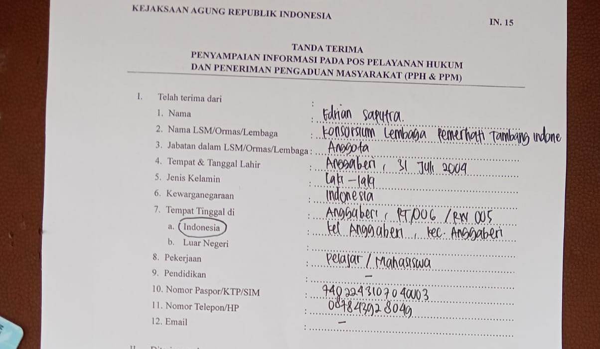 Terakhir, Arnol berharap agar laporan dengan bukti dugaan kejahatan pertambangan PT KPi tersebut harus segera ditindaklanjuti oleh Kejaksaan Agung RI. Mengingat PT KPI saat ini sedang gencar-gencarnya melakukan aktivitas pertambangan bahkan saat malam hari