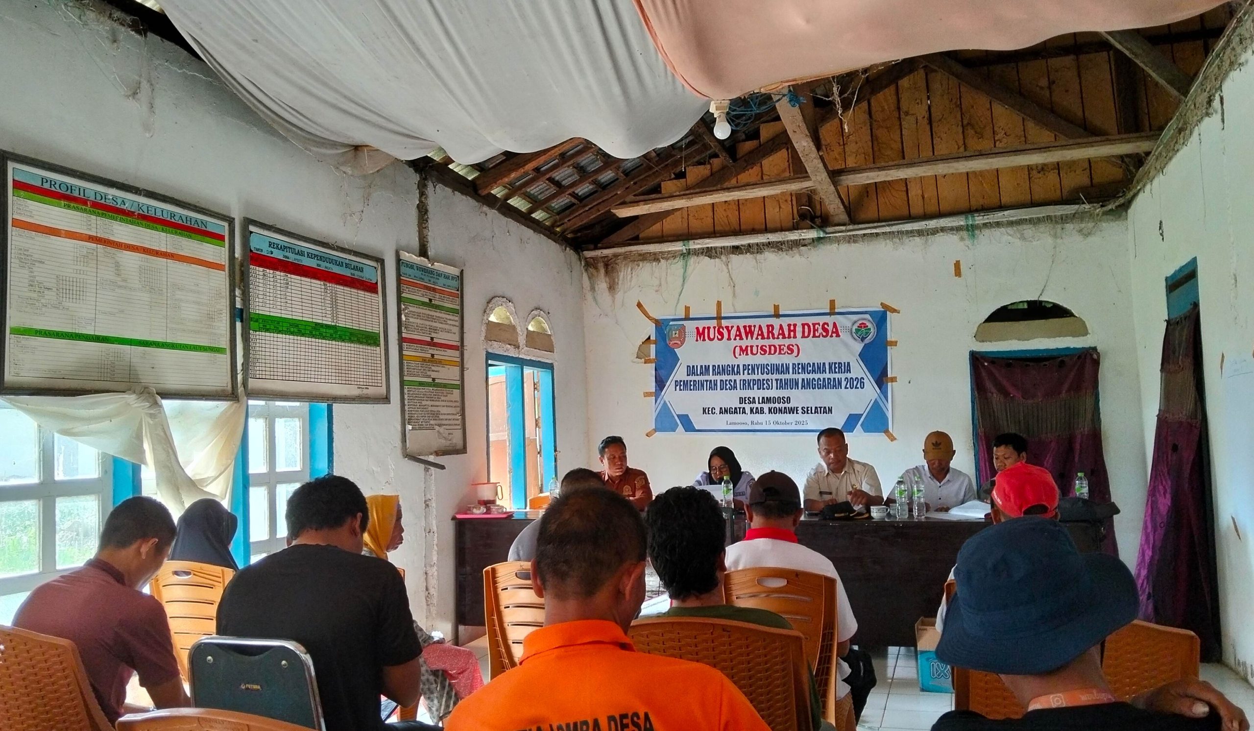 Konsel, Sultratimes.com, – Bertempat di Balai Desa Lamooso Kecamatan Angata Kabupaten Konawe Selatan (Konsel), telah dilaksanakan Musyawarah Desa (Musdes) dalam rangka Penyusunan Perencanaan Pembangunan Desa (RKP Desa) Tahun 2026,.Rabu,15/10/2025
