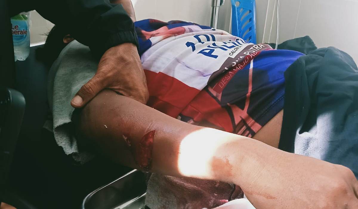 Akibat kejadian itu, korban mengalami luka bacok di kepala,betis, paha dan di lengan