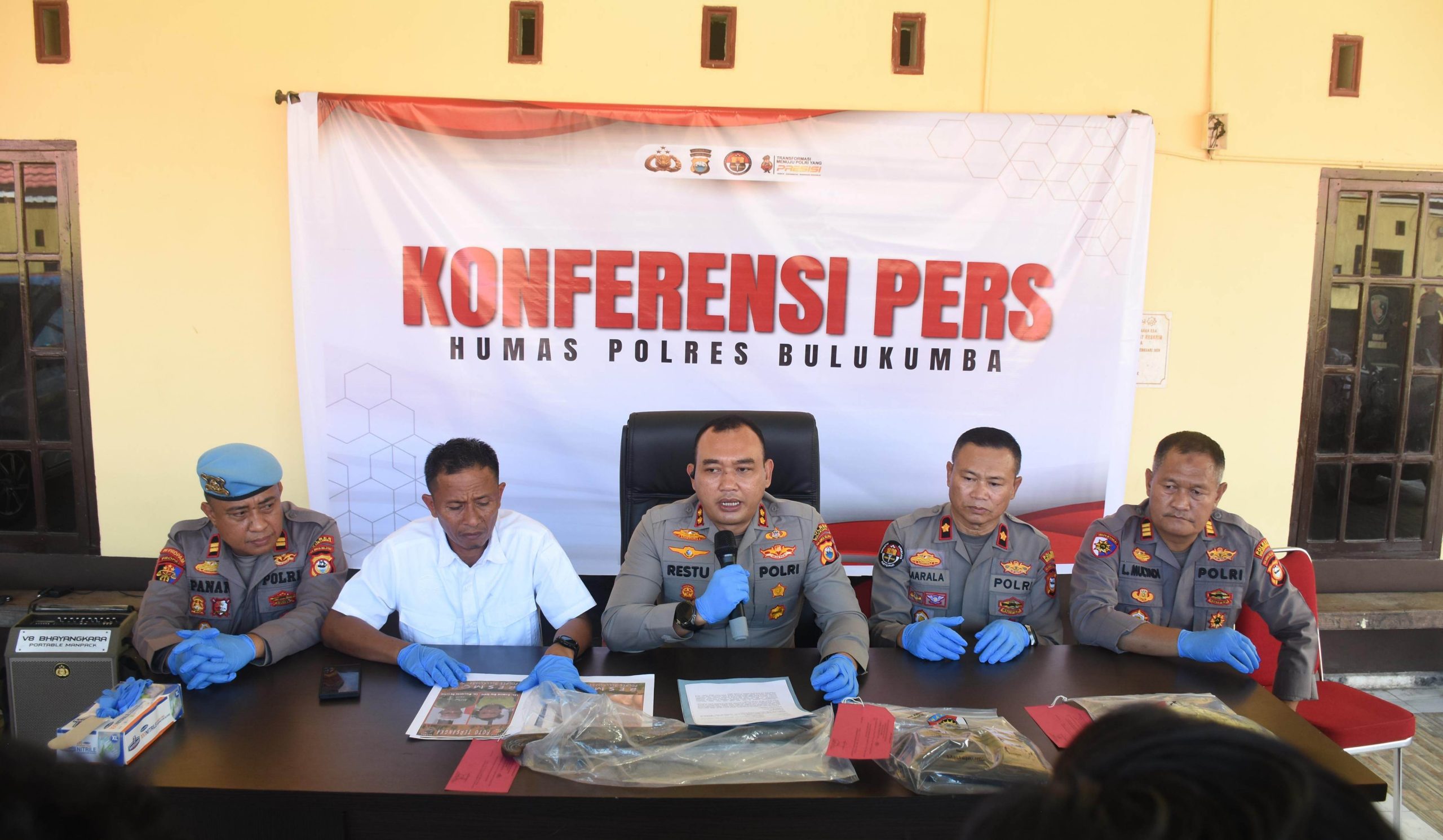 Hal tersebut disampaikan dalam konferensi pers yang digelar pada Rabu (01/04/2026) di Mapolres Bulukumba yang dipimpin langsung oleh Kapolres Bulukumba AKBP Restu Wijayanto, S.I.K., didampingi Kasat Reskrim IPTU Muhammad Ali, S.Sos., Kasi Humas KOMPOL H. Marala, Kasiwas AKP Lis Mulyadi, serta Kasi Propam IPTU Andi Panangrangi, dan dihadiri sejumlah awak media.